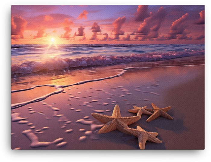 Catch the first light of the coast with Coastal Dawn with Starfish Canvas Wall Art—a bold, sea-kissed centerpiece that makes waves in any room.