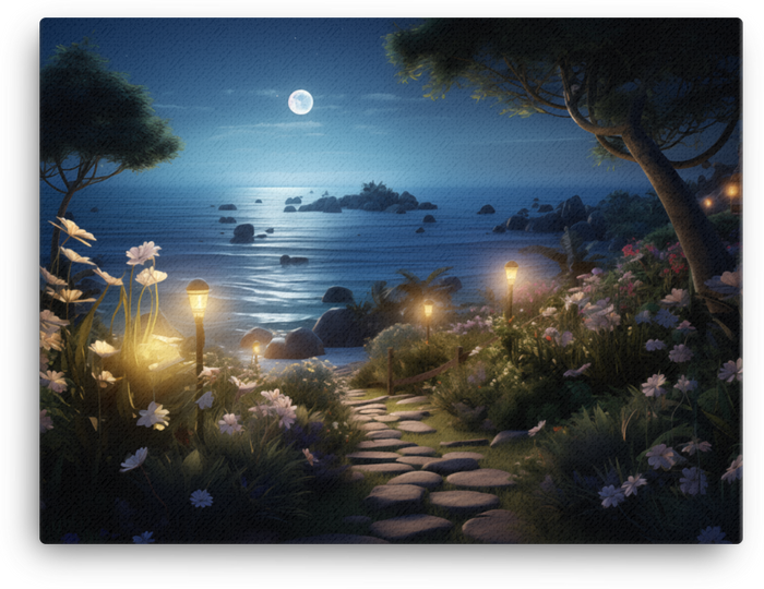 Coastal Moon Garden is a canvas wall art that washes your space in moody coastal tones and moonlit whimsy, creating an instant focal point that’s equal parts calming and quirky.