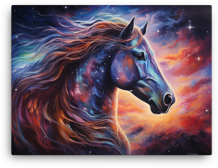 - Artwork style: Cosmic-inspired fantasy of a horse—bold, dreamy, and ready to energize your space.