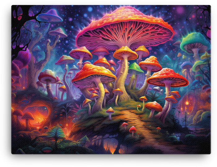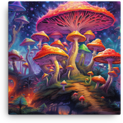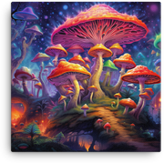 Cosmic Mushroom Dreams Canvas Wall Art bursts with cosmic whimsy, turning any wall into a dreamlike portal. The surreal, mushroom-inspired motif glows in vibrant hues, delivering a bold Visual Funky statement that feels both playful and gallery-ready.