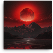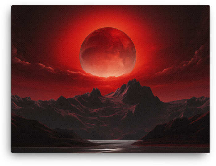 Crimson Eclipse over Mountainous Terrain canvas wall art from Visual Funky unleashes a bold twilight mood, turning any room into a dazzling gallery of color and contrast.