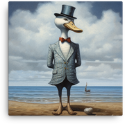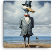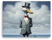Dapper Duck in Suit with Ocean Backdrop Canvas Wall Art
