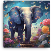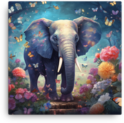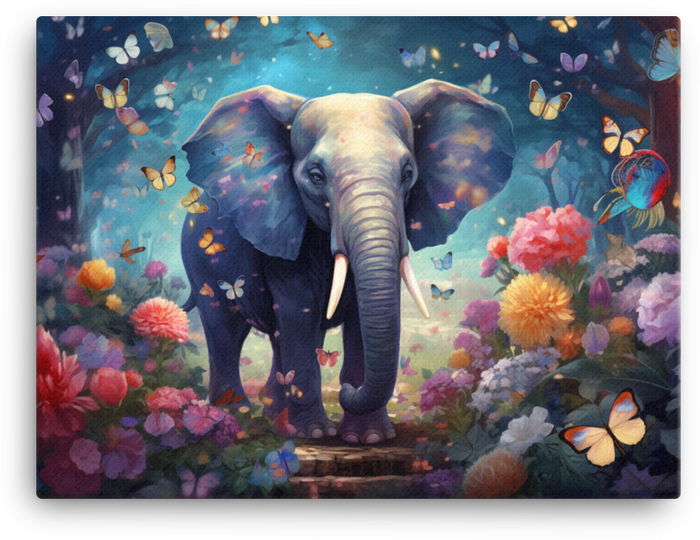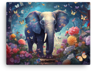 Step into a whimsical sunlit garden where an enchanted elephant strolls among bold blooms—this Enchanted Garden Elephant Canvas Wall Art brings a playful, Visual Funky vibe to any room or office.