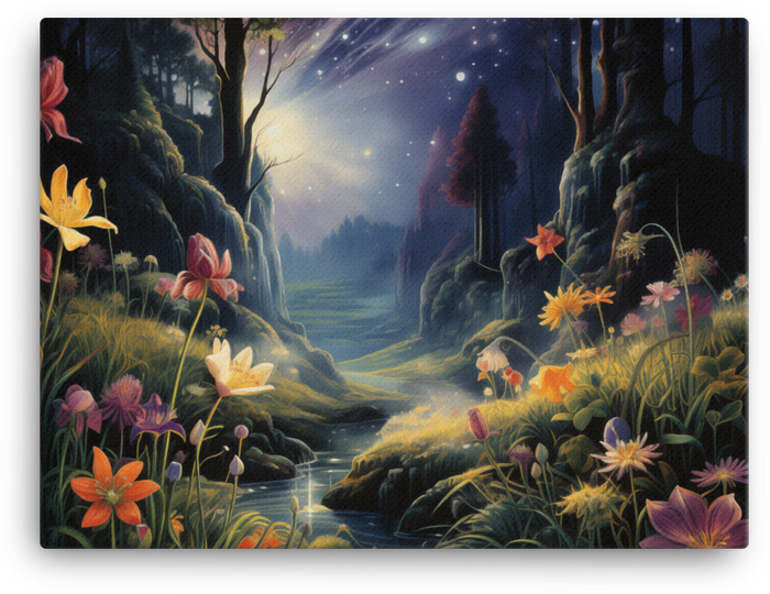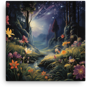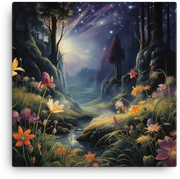 Enchanted Nighttime Wildflower Meadow Canvas Wall Art