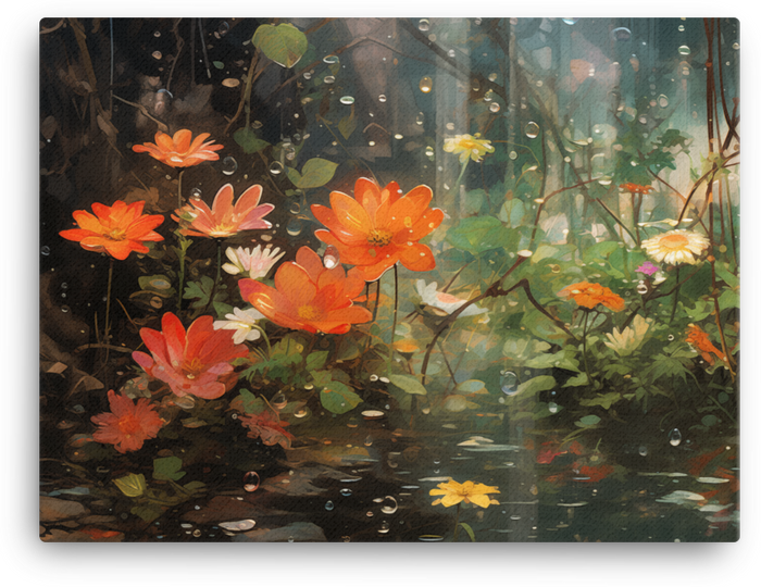Step into the Enchanted Rainy Meadow—a canvas wall art where moody drizzle meets sunlit grass in a playful, dreamlike tableau.
