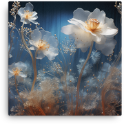 Let the Ethereal Blue Wildflowers in Moonlight canvas wall art sweep your space into a dreamy midnight garden, where blue petals glow with moonlit quiet and movement.