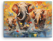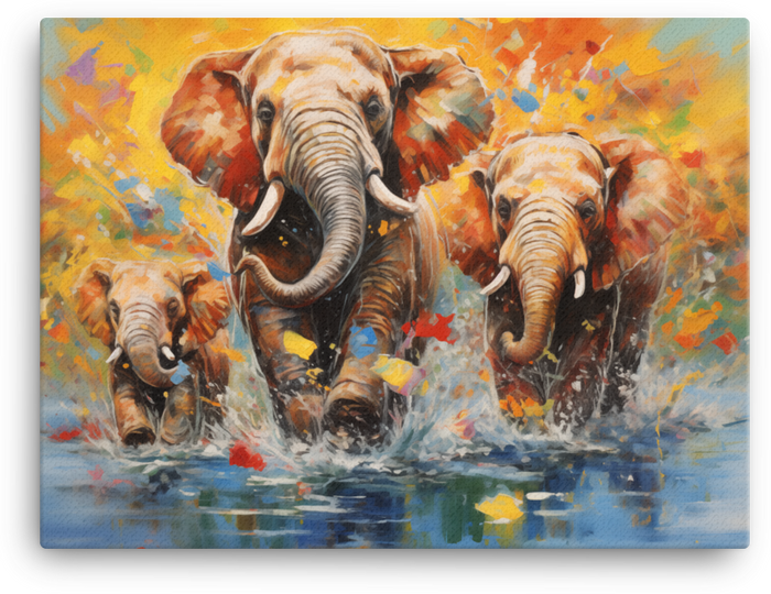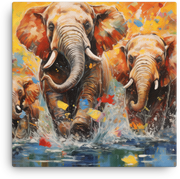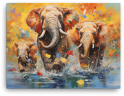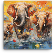 Let a family of elephants cross your walls in a splash of water-washed color—this elephants crossing water canvas wall art brings a bold, wildlife-inspired moment to life in your space.
