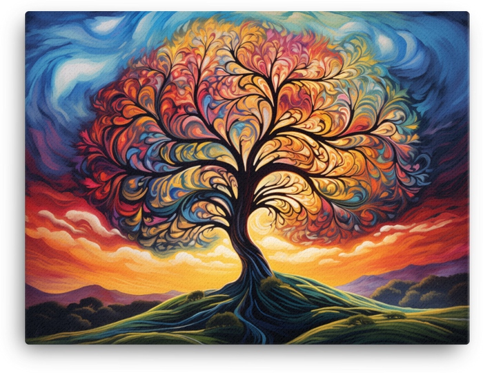 Fiery Sunset and Swirling Sky Tree Canvas Wall Art