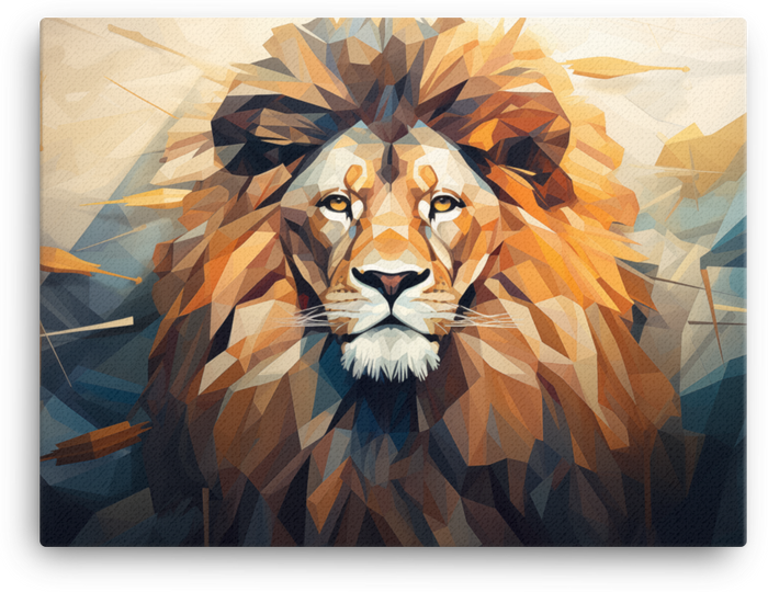 Geometric Dawn Lion Canvas Wall Art roars to life with sunrise hues and bold geometry, blending artful chic with Visual Funky flair.