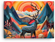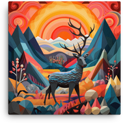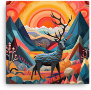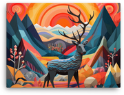 Geometric Sunrise with Majestic Deer Canvas Wall Art