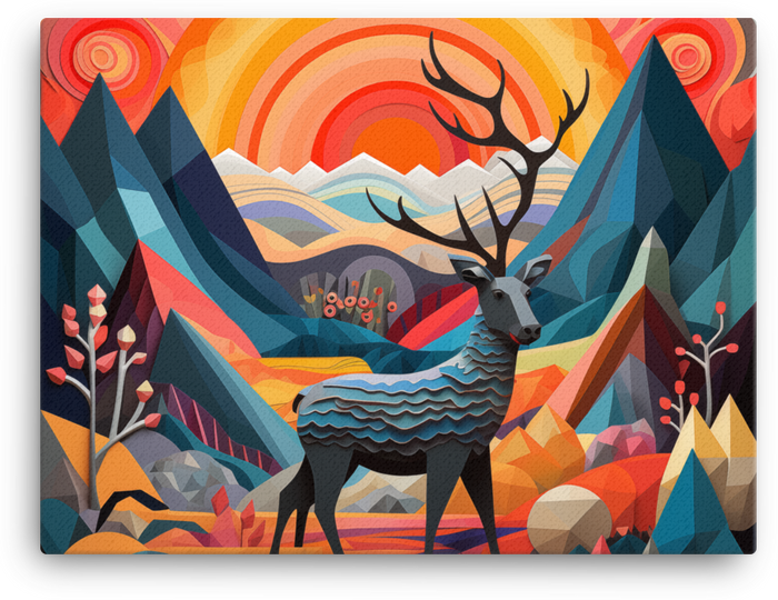 Wake up your walls with Geometric Sunrise with Majestic Deer Canvas Wall Art—a bold blend of geometric shapes and a regal deer, set in a radiant sunrise palette. A fade-resistant print on premium poly-cotton keeps colors vibrant.