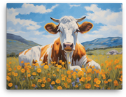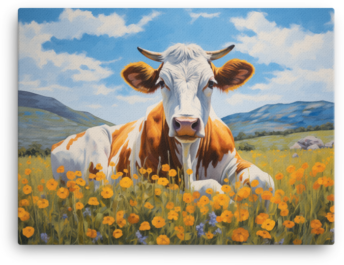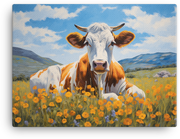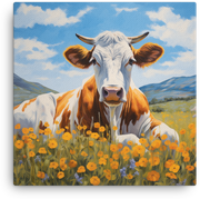 Golden Meadow Cow canvas wall art brings a splash of playful whimsy to any room or office. This vivid, fade-resistant canvas print bursts with warm golden tones and soft, dreamy shadows, so your space feels alive and inviting.