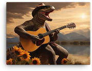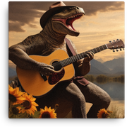 Guitar-Playing Dinosaur at Sunset Canvas Wall Art