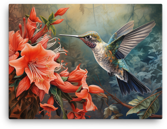 Hummingbird and Tiger Lilies Canvas Wall Art