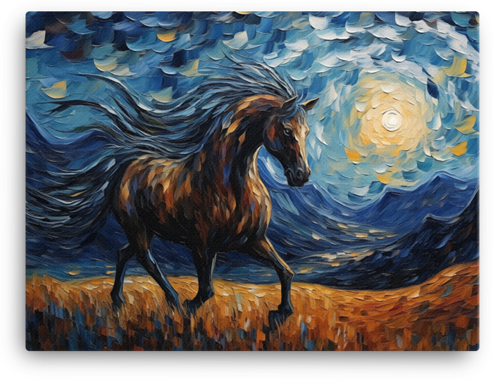 Ready to own this statement artwork? Add to cart now and bring the Impressionist Night Stallion into your home.