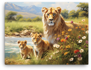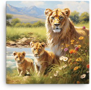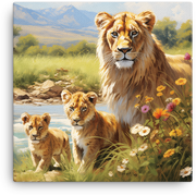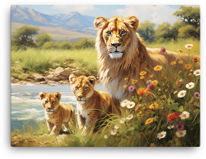 Ready to own a striking piece of art? Add this canvas wall art to your cart now and bring the wild charm of the lioness and cubs into your home.