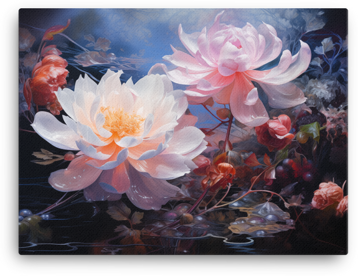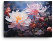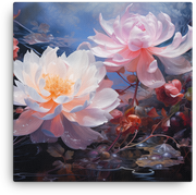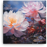 Step into a moonlit night where Majestic Lotus Blossoms swirl in serene hues—this Moonlit Serenade canvas wall art brings a bold, dreamlike centerpiece to any room.