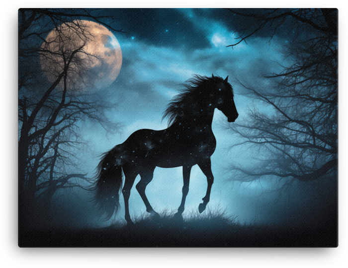 Step into the night with Midnight Mystique Horse canvas wall art—a bold, moonlit silhouette that blends wild energy with elegant mystery to electrify any space.