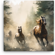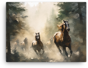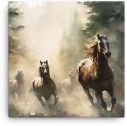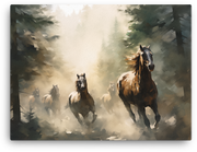 Keywords: canvas wall art, horse canvas wall art, fade-resistant, acid-free, poly-cotton base, hand-stretched, wood stretcher bars, matte finish. We back your purchase with a 100% customer satisfaction guarantee. Add to cart now to bring the Misty Forest Stampede into your home and let the art spark your space.