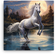 We back this piece with our 100% customer satisfaction guarantee. Add Moonlit Ripples White Horse Canvas Wall Art to your cart today and invite the ethereal glow of moonlit ripples into your home.