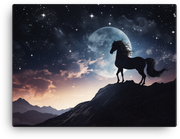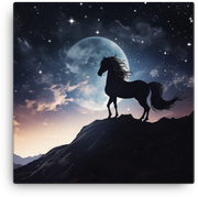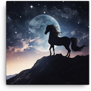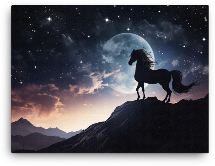 Step into a moonlit moment with the Moonlit Silhouette Horse Canvas Wall Art—a bold horse silhouette gliding across a dusky sky. This Visual Funky piece blends edgy lines with dreamy glow, turning your space into a stylish gallery.