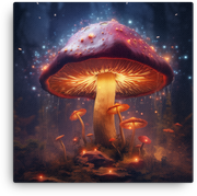 Mystical Mushroom Glow Under Starry Sky Canvas Wall Art