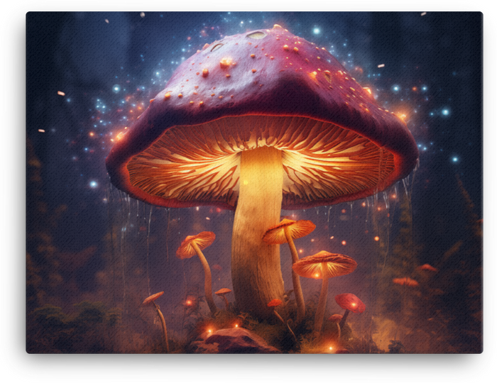 We stand behind every piece with a 100% customer satisfaction guarantee. Bring the art into your home today and elevate your space with the Mystical Mushroom Glow Under Starry Sky.