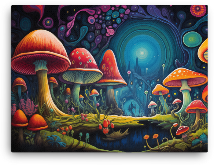 Dive into a forest of color with Mystical Mushroom Nightlight Canvas Wall Art—where whimsy meets wonder and the art feels like a glow you can almost hear in the dark.