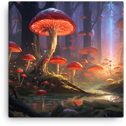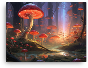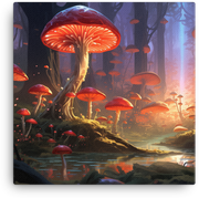 Mystical Mushrooms at Dusk canvas wall art invites you into a twilight garden where glowing fungi meet Visual Funky flair—a bold, whimsical piece that instantly elevates any room or office with its dreamy, imaginative vibe.