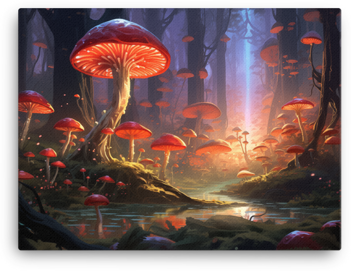 Bring this art into your home to elevate your space, inspire conversation, and add colorful, mood-lifting energy for home decor enthusiasts. We stand behind every piece with our 100% customer satisfaction guarantee. Add to cart now and let the Mystical Mushrooms at Dusk transform your walls.
