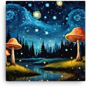 Step into a moonlit forest of whimsy with Mystical Night Mushroom Path — a canvas wall art that glows with surreal, dreamlike charm.
