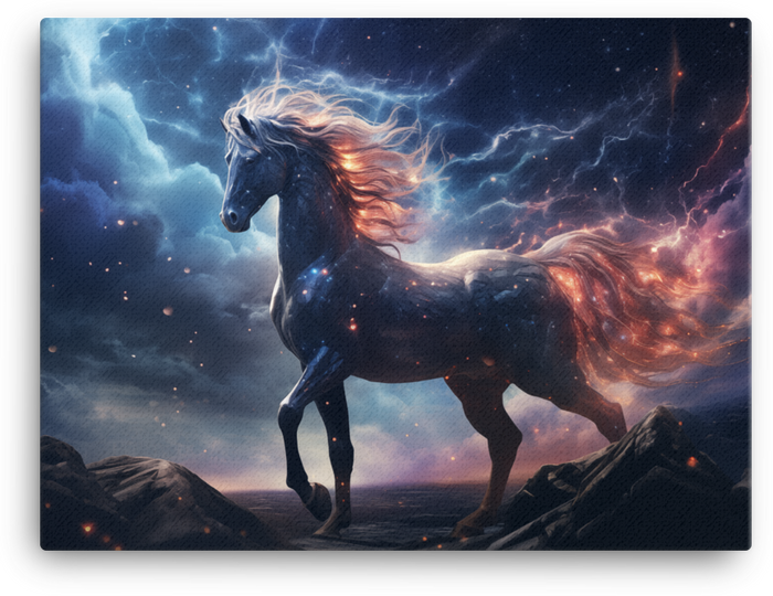 Nebula Mane Horse Canvas Wall Art bursts onto your wall with a cosmic horseshoe of color and motion. This canvas print fuses nebula-inspired hues with majestic equine energy, delivering a vivid, fade-resistant image that instantly elevates any room or office into Visual Funky territory.