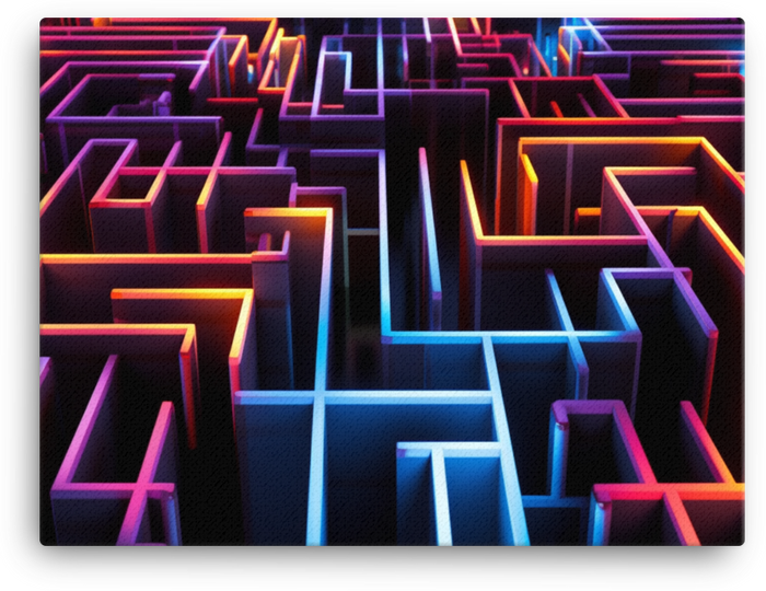 Step into a neon-night dream with Neon Labyrinth, a canvas wall art that fuses electric color with bold geometry for Visual Funky spaces that demand attention.