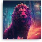 Light up your space with Neon Metropolis Lion — a bold canvas wall art where neon cityscape energy meets a fearless feline, designed to electrify any room.
