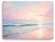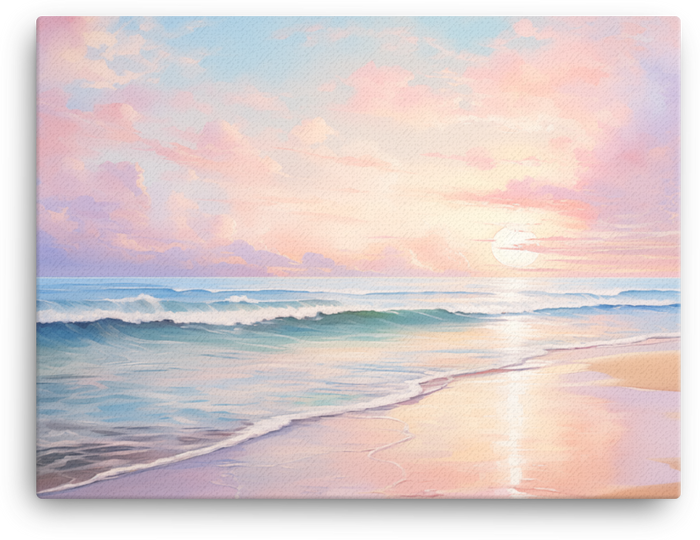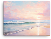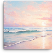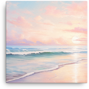 Let the pastel coastal sunrise wash over your walls—a dreamy canvas wall art that blends soft peach, seafoam, and dune-hued tones into a tranquil horizon. This canvas print boasts a vivid, fade-resistant image that stays radiant day after day.