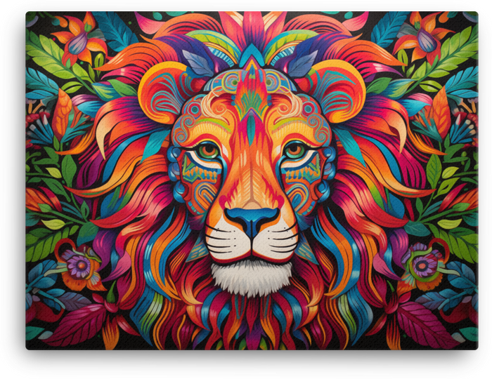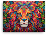 Psychedelic Jungle Lion canvas wall art unleashes bold energy—a vivid color-splashed roar of jungle whimsy and retro-funky flair that instantly commands attention in any room.
