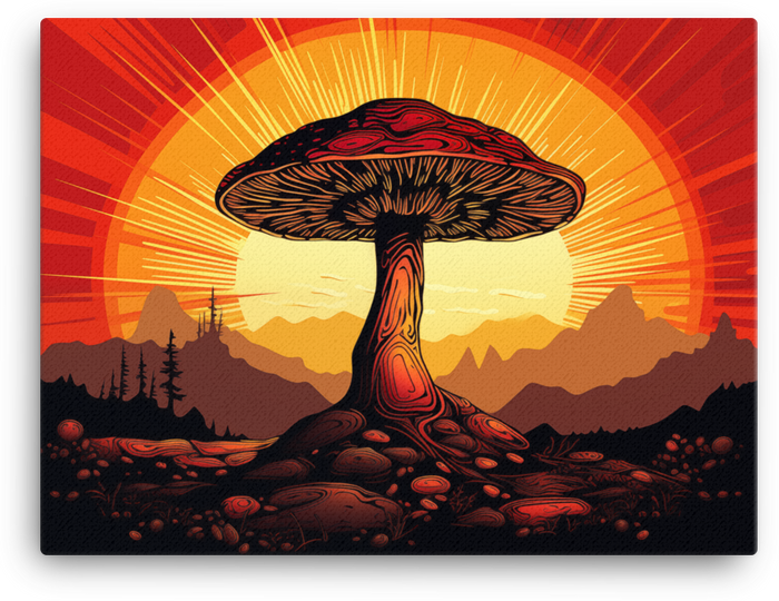Radiant Mushroom Solstice Canvas Wall Art invites you to step into a whimsical, glowing fusion of nature and cosmic funk.