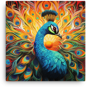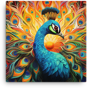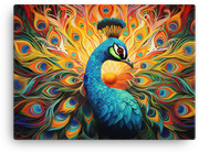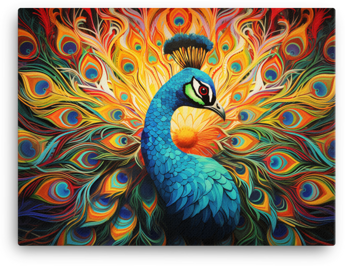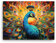Radiant Peacock Splendor bursts onto your wall with electric blues, emerald greens, and regal golds—a canvas wall art that transforms any space into a bold, whimsical gallery.