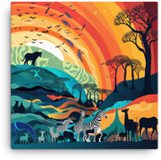 Safari Sunset Silhouette Wildlife Canvas Wall Art