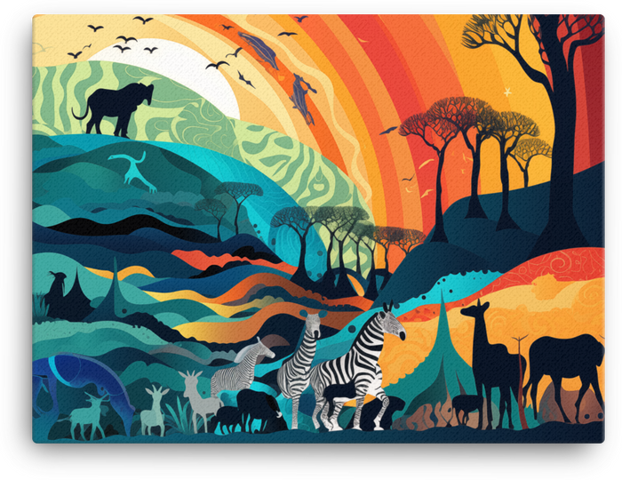Step into the glow of a Safari Sunset—a striking silhouette wildlife scene bathed in sunset hues. This Visual Funky canvas wall art turns your space into a bold, creative gallery you’ll love coming home to.
