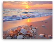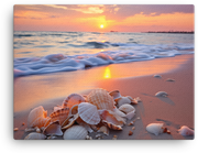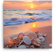 Immerse yourself in the sun-kissed charm of Seashell at Coastal Sunset, a canvas wall art that fuses coastal serenity with Visual Funky's signature bold vibe. This vivid canvas print is fade-resistant, so the colors stay as lively as the moment you first saw it.