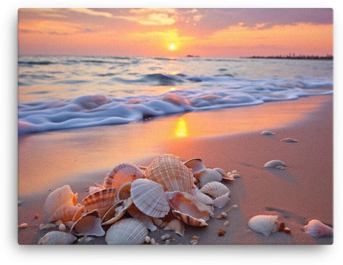 Bring the seashell coast into your space—add Seashell at Coastal Sunset to your cart and elevate your home decor today.
