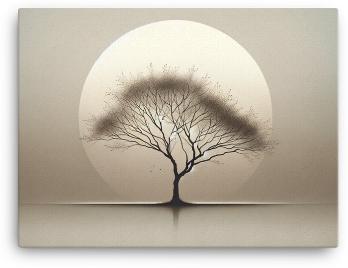 Let the quiet drama of dawn unfold in your space with the Solitary Tree in Monochrome Dawn canvas wall art—a bold, minimalist moment where light and shadow hold center stage.