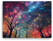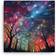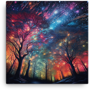 Starlit Sky Through Forest Trees Canvas Wall Art