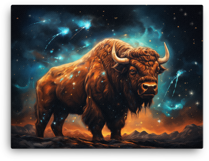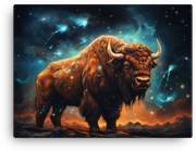 Let the Starry Night Bison Majesty canvas wall art transform your space with a fearless blend of celestial glow and wild grandeur. A luminous night sky dances above a regal bison, creating a centerpiece that sparks conversation and imagination.