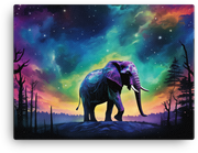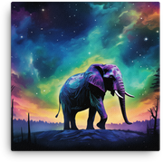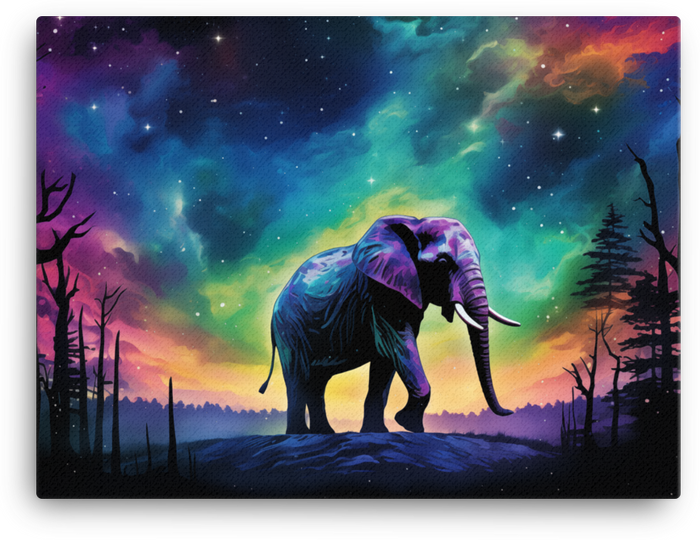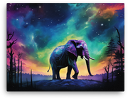 Starry Night Elephant canvas wall art bursts with celestial whimsy—where a glowing night sky meets a playful pachyderm, perfect for Visual Funky spaces that crave bold charm.