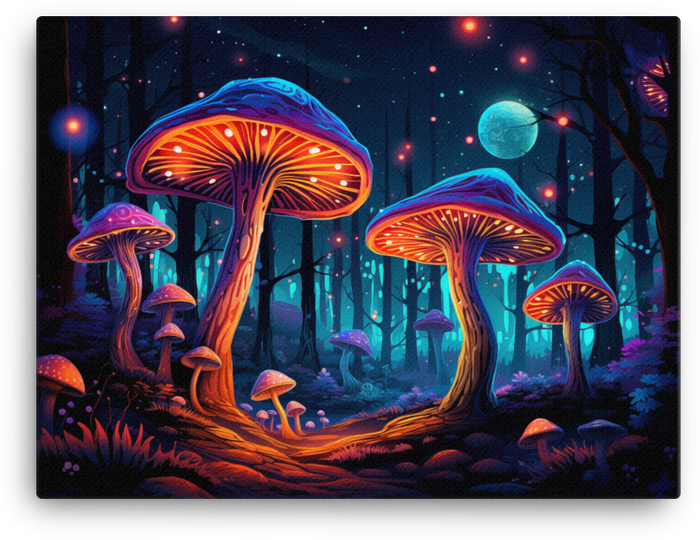 Step into a starry night where whimsy grows among moonlit mushrooms—Starry Night Mushroom Grove on canvas. This Visual Funky piece blends dreamlike celestial vibes with quirky woodland forms for a statement wall that sparks joy and conversation.