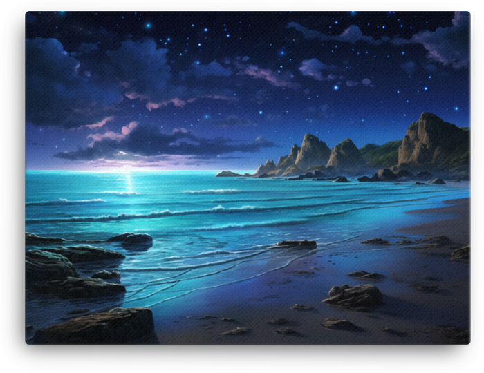 Let the stars meet the shore with Starry Night Over the Coastal Shore — a canvas wall art that fuses nocturnal magic with coastal charm for Visual Funky spaces.