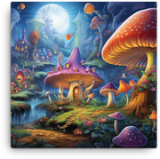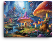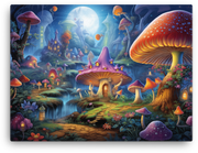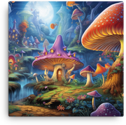 Wake up your walls with a sunrise symphony over a magical mushroom hamlet—a canvas wall art where dawn light dances across whimsy and wonder, turning any space into a playful dreamscape.