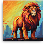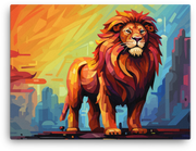 Sunset City Lion Sovereign bursts onto your wall with regal sunset hues and an urban roar—a fearless fusion of city silhouette and royal lion.